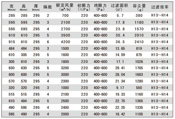 W型V型組合式高效過(guò)濾器濾料參數(shù):