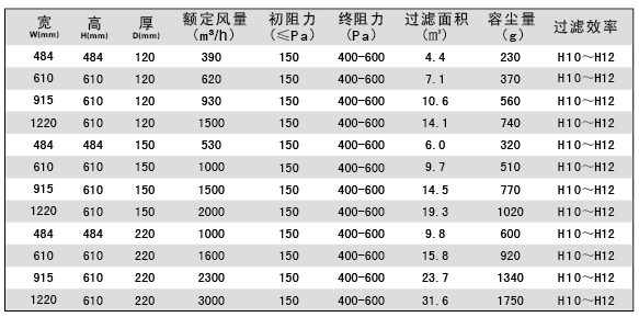 亞高效過濾器規(guī)格尺寸技術參數(shù):
