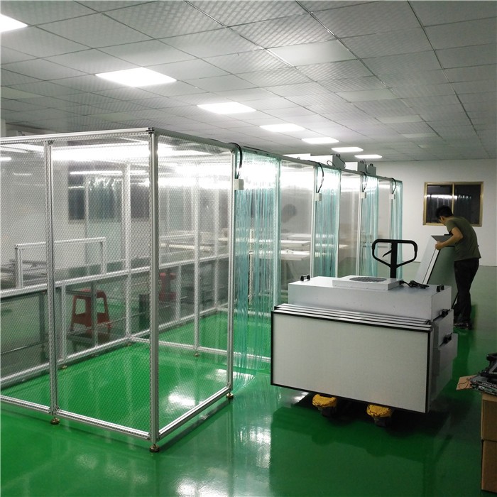 百級潔凈棚采用工業(yè)鋁材(或不銹鋼方通、鐵方通噴塑)作為框架,風(fēng)機濾網(wǎng)機組(FFU)送風(fēng),四周懸掛防靜電垂簾(或鋼化玻璃),其內(nèi)部凈化級別可達(dá)到100-10000級。適用于操作區(qū)內(nèi)局部凈化級別要求高的區(qū)域。
