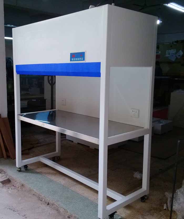 在工廠化生產中,接種工作量很大,需 經常長久地工作時,超凈臺是很理想的設備。超凈臺由三相電機作鼓風動力,功率145~260W左右,將空氣通過由特 的微孔泡沫塑料片層疊合組 的“超級濾清器”后吹送出來,形成連續不斷的無塵無菌的超凈空氣層流,即所謂“ 有效的特殊空氣”,它除去了大于0.3μm的塵埃、真菌和細菌孢子等等。
