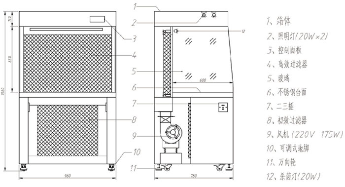 8、采用可調風量風機系統,輕觸型開關及雙速調節電壓大小,保證工作區風速始處于理想狀態。