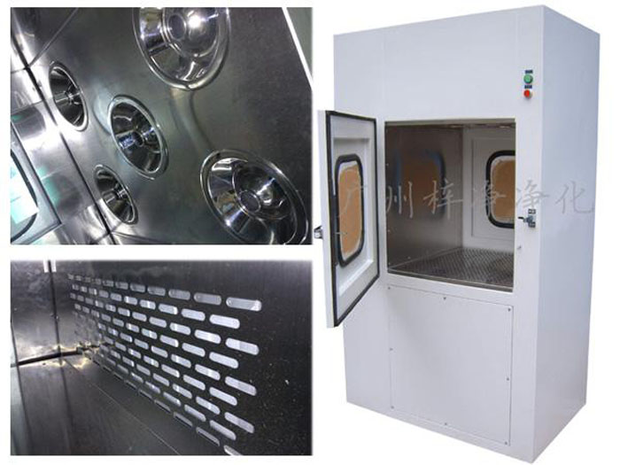 風淋式傳遞窗是潔凈室的一種輔助設備,主要用于潔凈區和潔凈區之間或潔凈區和非潔凈區之間的小件物品的傳遞,以減少潔凈室的開門次數,把對潔凈區的污染降低到最低程度。