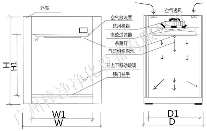 5、層流傳遞窗風速:經過高效過濾器后出風風速控制在0.38-0.57m/s(在高效出風均流板下方150mm處測試);