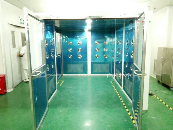 貨淋室通過(guò)高效風(fēng)機(jī)作用送風(fēng),經(jīng)高效過(guò)濾器過(guò)濾后吹出高速潔凈氣流,以22-30m/s超強(qiáng)風(fēng)速,確保進(jìn)入潔凈區(qū)的人員及貨物達(dá)到徹底除塵的效果。采用全自動(dòng)紅外線感應(yīng)控吹淋,雙門(mén)電子互鎖。