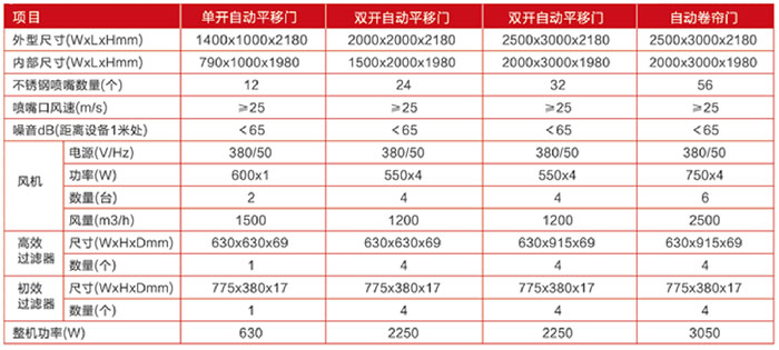 自動(dòng)門貨淋室規(guī)格尺寸及其它參數(shù):