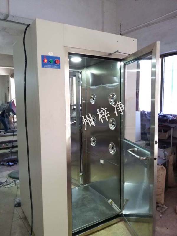 風(fēng)淋室是人進(jìn)入潔凈室所必需的通道,它可以減少進(jìn)出潔凈室所帶來的污染問題,減少由于人貨進(jìn)出帶來的大量塵埃粒子由潔凈室的入口處安裝功能齊全的“氣閘室”可以減少空氣污染微粒的數(shù)量,當(dāng)人貨通過風(fēng)淋室時(shí),污染微粒被經(jīng)過高效過濾的高度潔凈空氣射掉,25m/s以上的高風(fēng)速確保了有效的噴射和飄移微粒經(jīng)過初效過濾器和高效過濾器兩級(jí)過濾器基本過濾掉。為了保持風(fēng)淋的安全使用,維持潔凈室環(huán)境的潔凈度。