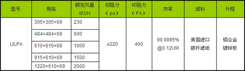 過濾效率:99.9995%~99.999995% @ 0.12 um。