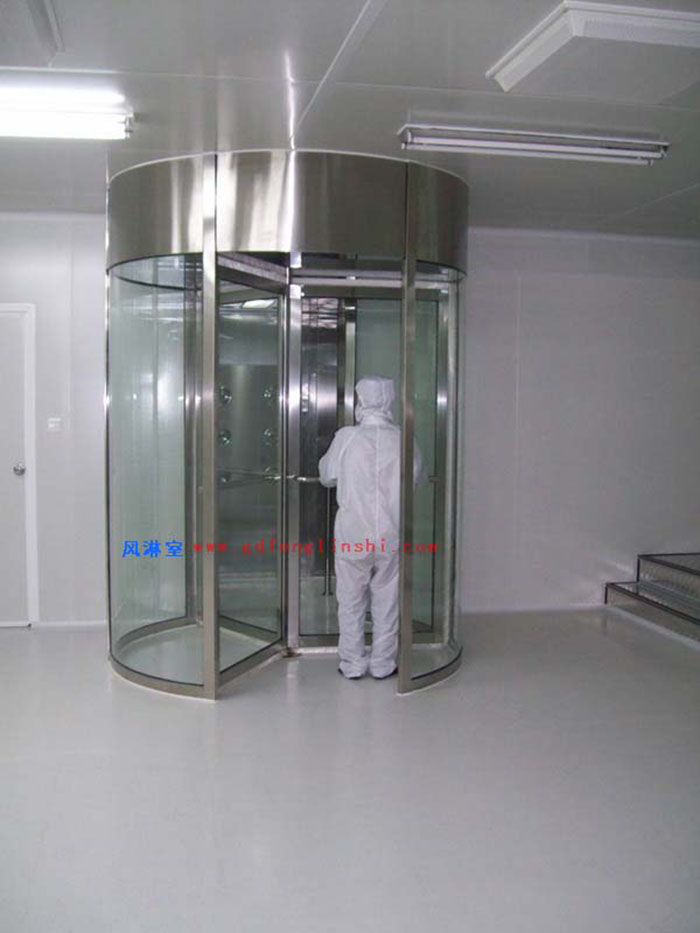 B、盡管潔凈室與非潔凈室本身也造成風力和氣壓,有大量氣流和地面風,旋轉門風淋室運轉起來仍然毫不費力、輕巧自如,因為向里推門的氣壓和向外推門的氣壓式相等的。