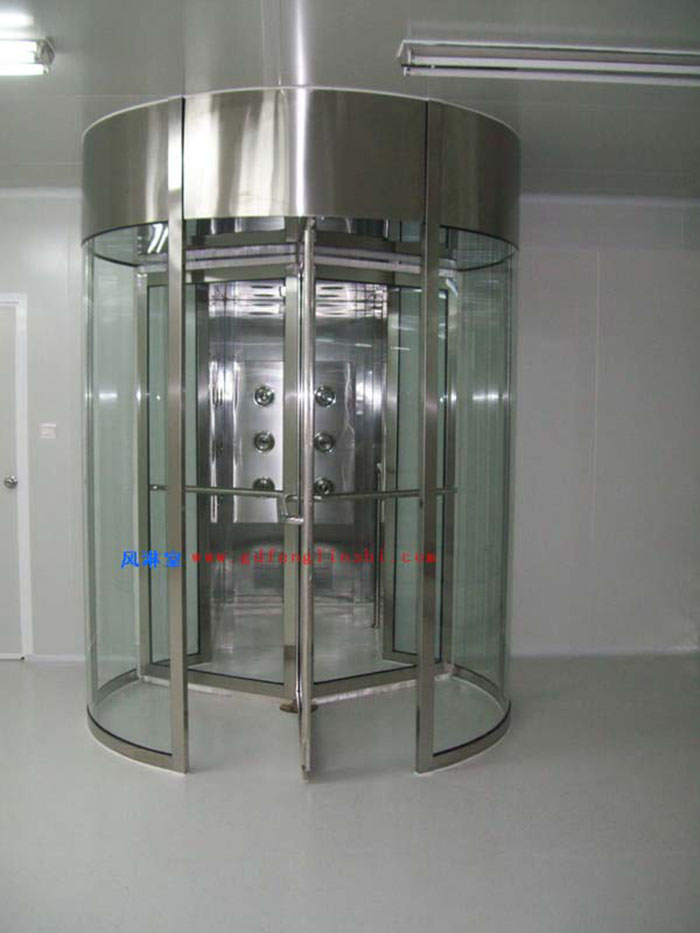 旋轉門風淋室是進入潔凈室緩沖好的凈化設備之一,它利用高速的氣流吹落并清除人身服裝或物料表面上附著的粒子。杜絕工作人員將頭發,灰塵、細菌帶入車間,達到工作場地嚴格的無塵凈化標準,生產出高質量的產品。