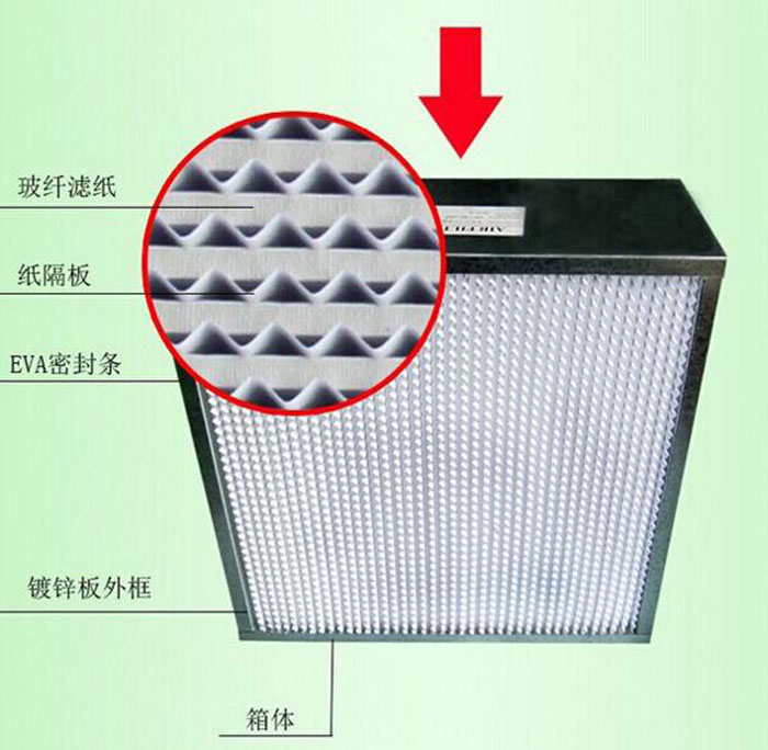 1.紙隔板高效空氣過濾器主要用于、航太、電子、半導體、晶片、生物制藥、醫院、食品行業等需要高潔凈度的場合所。