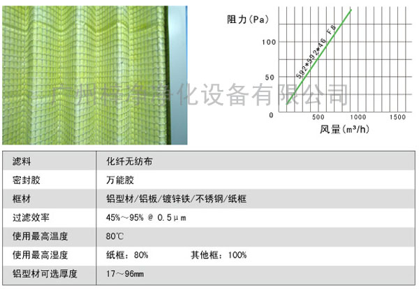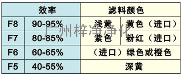 效率:大氣塵比色法平均過濾效率:45%,65%,85%,95%;