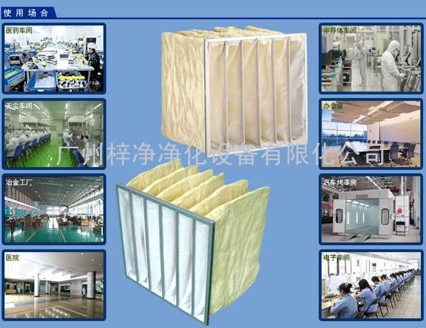 2、F8袋式中效過濾器是潔凈室的集中通風(fēng)空調(diào)系統(tǒng)的中級(jí)過濾。