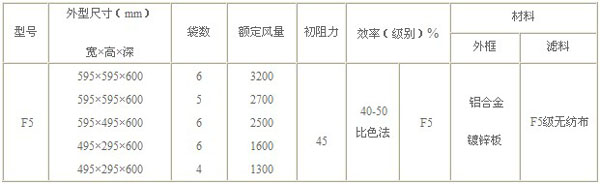 可提供滿足特殊空氣潔凈要求的不同型號(hào)和效率的過濾器注:我公司生產(chǎn)各種不同規(guī)格的F5級(jí)中效過濾器,歡迎客戶來電咨詢洽談!