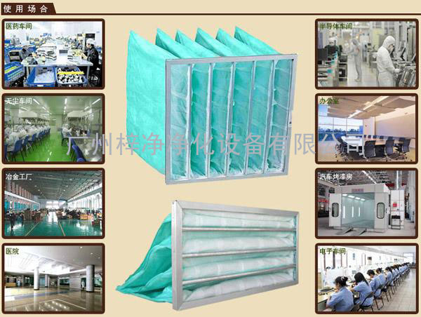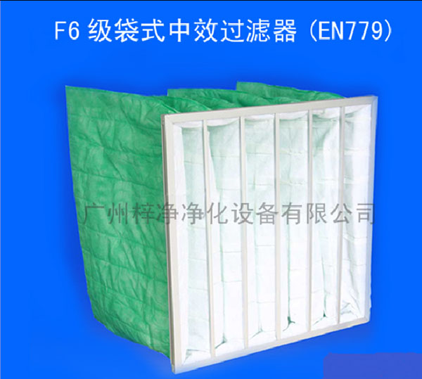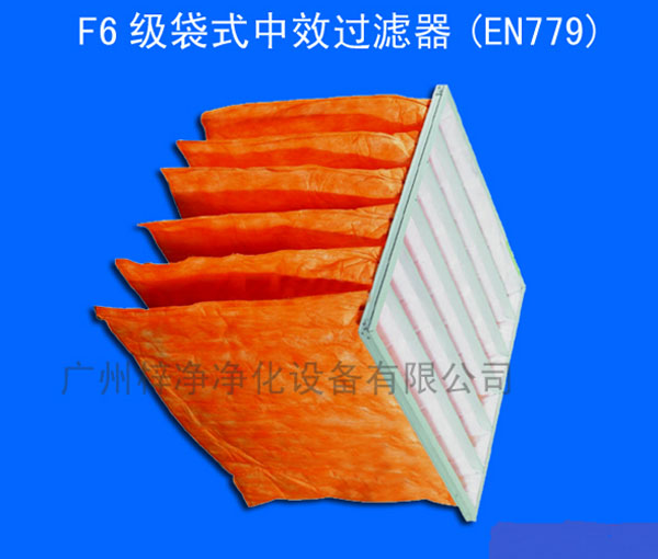 F6級(jí)袋式中效過濾器:(過濾效率60-65%)綠色或橘紅色、主要用于噴漆車室、學(xué)校、計(jì)算機(jī)房;