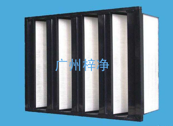 濾料超細(xì)聚丙烯纖維,呈V型排列在一個(gè)非常緊密的聚苯烯或鋁合金的支撐外框內(nèi);