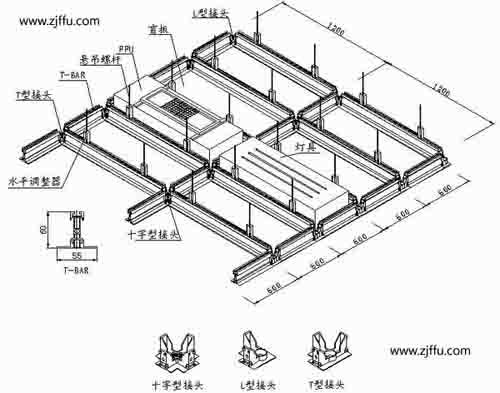 由于FFU的風機過濾機組是直接安裝在天花板骨架間,為了使過濾器既要更換簡便快捷,又要使FFU的風機運行保持平衡,減少安裝失衡的機率。因此一般考慮專業配套的龍骨架。這種龍骨架是采用機械冷軋成特殊幾何形狀(U形)的型鋼,金屬表面根據其環境不同,進行防腐處理(如靜電噴涂、熱冷鍍鋅、環氧等),可以即保證了與之相似槽鋼的強度,又滿足了FFU運行的需求。