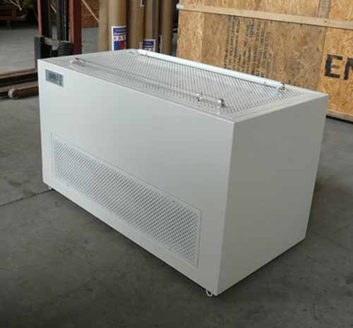 層流罩有幾種制作法:百級層流罩,萬級層流罩,吊頂式層流罩,懸掛式層流罩,移動式層流罩,支架式層流罩,液槽密封層流罩,醫用型層流罩。移動式垂直簾層流罩工作原理: