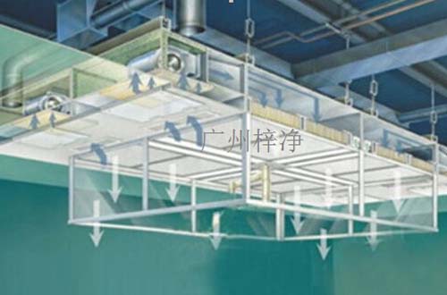1、吊頂式層流罩靈活地吊裝于需要高潔凈度的工藝點上方,以滿足局部高潔凈度的要求;