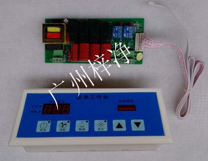 6、控制面板采用輕觸式開關,按鍵由風機鍵、照明鍵、紫外鍵、電源鍵、插座鍵、風量減小鍵、風量增大鍵組成,易于操作;顯示屏顯示內容有:風機的風速、顯示時間、紫外燈的工作時間、過濾器的工作時間;