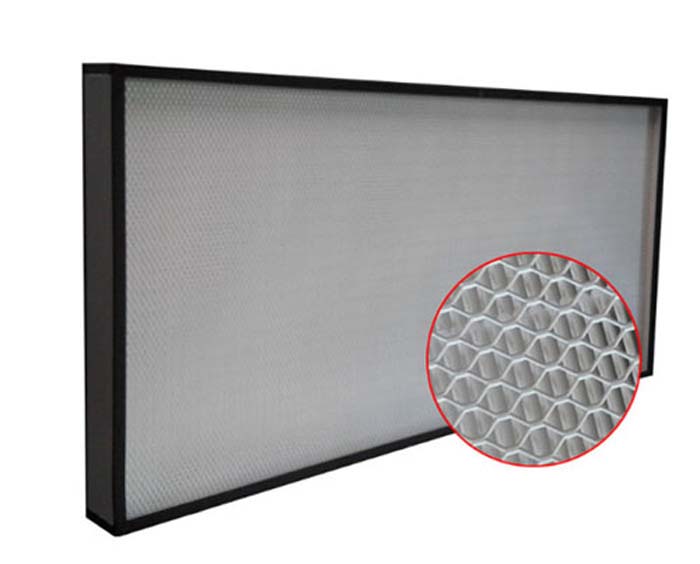 高效過濾器主要用于捕集0.3um及以下的顆?;覊m及各種懸浮物,過濾效率為99.99%@0.3um。采用超細玻璃纖維紙作濾料,膠版紙、鋁膜等材料作分割板,與鋁合金膠合而成。