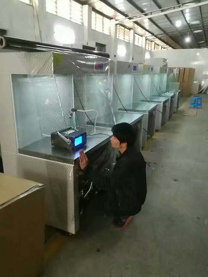 無塵工作臺進風口在背面或正面的下方,金屬網罩內有一普通泡沫塑料片或無紡布,用以阻攔大顆粒塵埃,應常檢查、拆洗,如發現泡沫塑料老化,要及時更換。除進風口以外,如有漏氣孔隙,應當堵嚴,如貼膠布,塞棉花,貼膠水紙等。工作臺正面的金屬網罩內是超級濾清器,超級濾清器也可更換,如因使用年久,塵粒堵塞,風速減小,不能保證無菌操作時,則可換上新的。